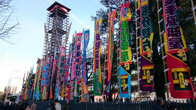 両国といえば相撲の聖地。年に6回開催される大相撲本場所の内、1月の初場所、5月の夏場所、9月の秋場所が両国国技館で開催されます。本場所中は相撲観戦を目的とした観光客で賑わいます。