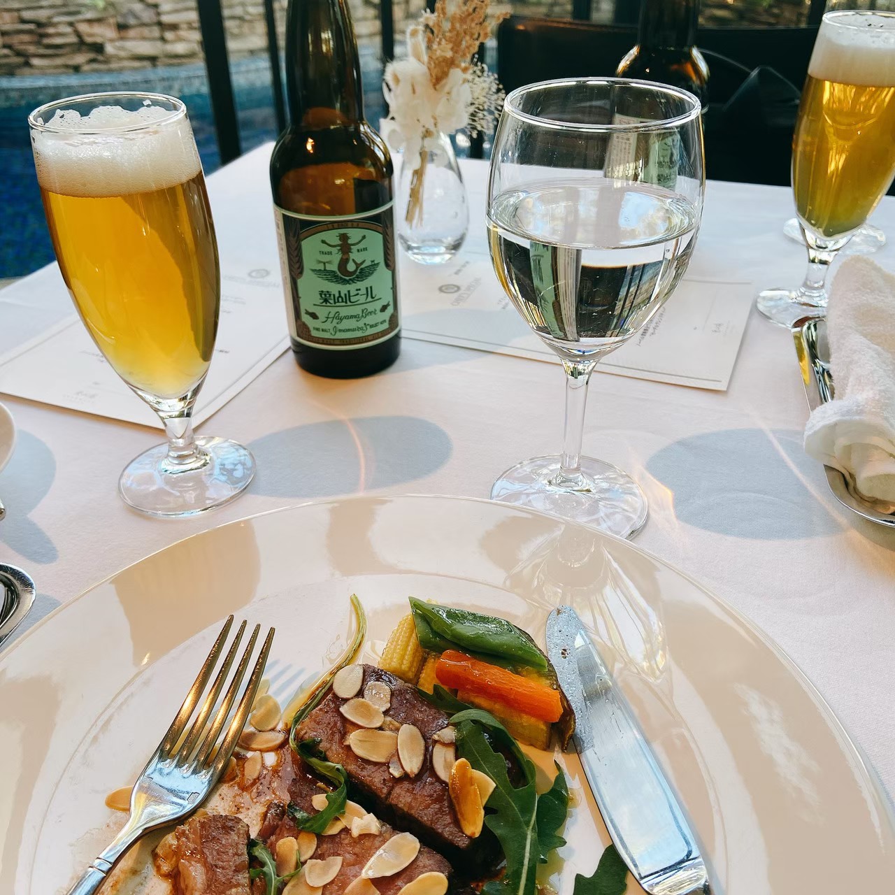 また、もしスパークリングワイン以外にお酒が飲みたくなったら、クラフトビール「葉山ビール」を注文することをおすすめします。しつこさのないさっぱりとしたのどごしがフレンチと良く合います。